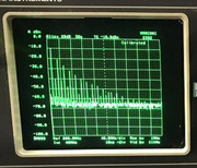 Set up : trasmettitore AM/SSB in gamma CB a 27.200MHz, filtro passa basso COMET CF30H,  Amplificatore 12300 alimentato a 13.5V com alimentatore da 30A che non ha dato cedimenti durante le misure, wattmetro Leader LPM-885, carico fittizio RMS HL-1K in bagno d'olio, A.S. HP con mainframe hp141T e cassetti 8554B e 8552B, sonda a loop posizionata sull'uscita del connettore di uscita del 12300. Band With= 10MHz/quadretto, BANDWITH=300KHz.
