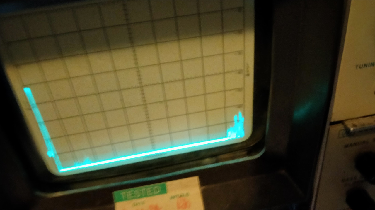 Questa foto mostra lo spettro da 0 a 100MHz. Quel gruppo di segnali in fondo a destra sono le emittenti FM.