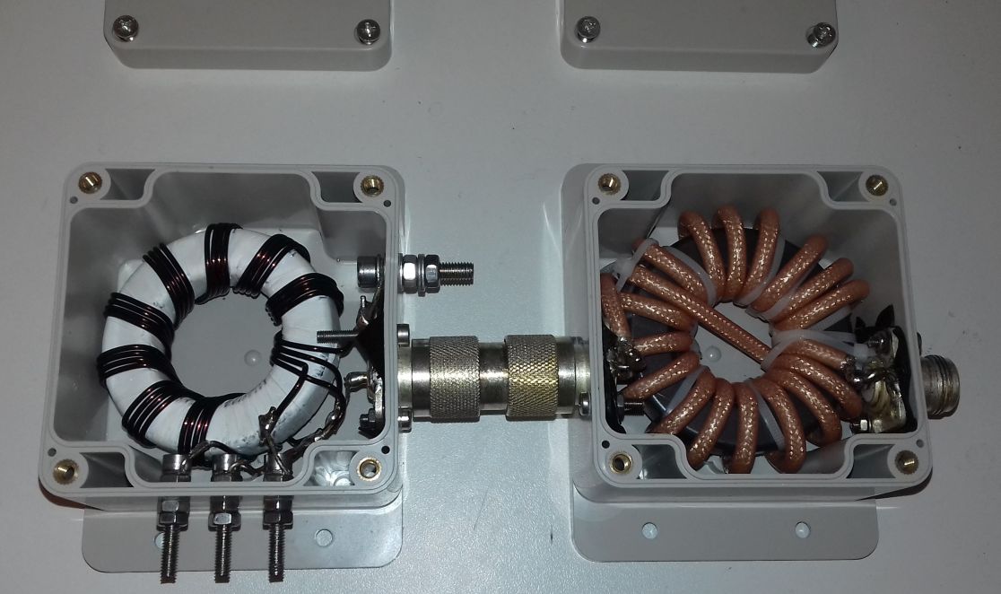 l'immagine mostra un BalUn "ruthroff" 4:1 (sopra) connesso ad una choke 1:1 (sotto), credo/spero che a questo punto, il modo di connettere le due unità sia chiaro