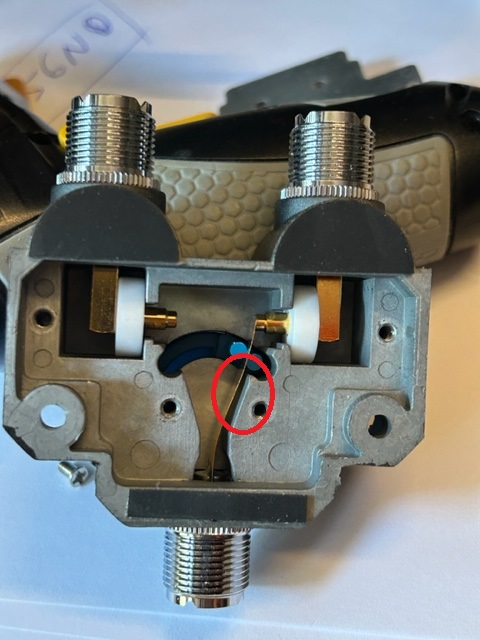 Nell'Avair il pirulo che guida la lamella verso la porta di destra o sinistra mi pare di plastica. Se è così, potrebbe forse contribuire a garantire la separazione fra le due porte (non conducendo a sua volta la rf) ma come si comporta con elevate potenze e tensioni? E appunto non pare esserci la messa in corto del lato non utilizzato.