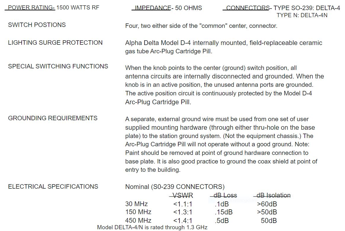 Per completezza inserisco le specifiche dell'ALPHA DELTA 4N