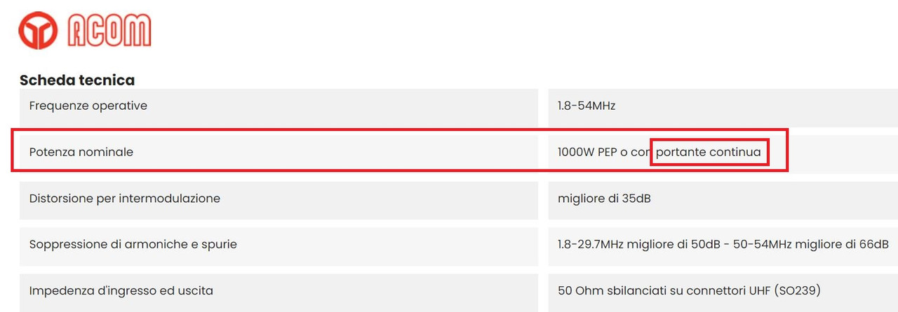 Come si vede la potenza massima di uscita viene definita come con portante continua oppure P.e.P.. non vi e' raddoppio della stessa come invece siamo abituati a leggere nelle specifiche dei "lineari" CB.