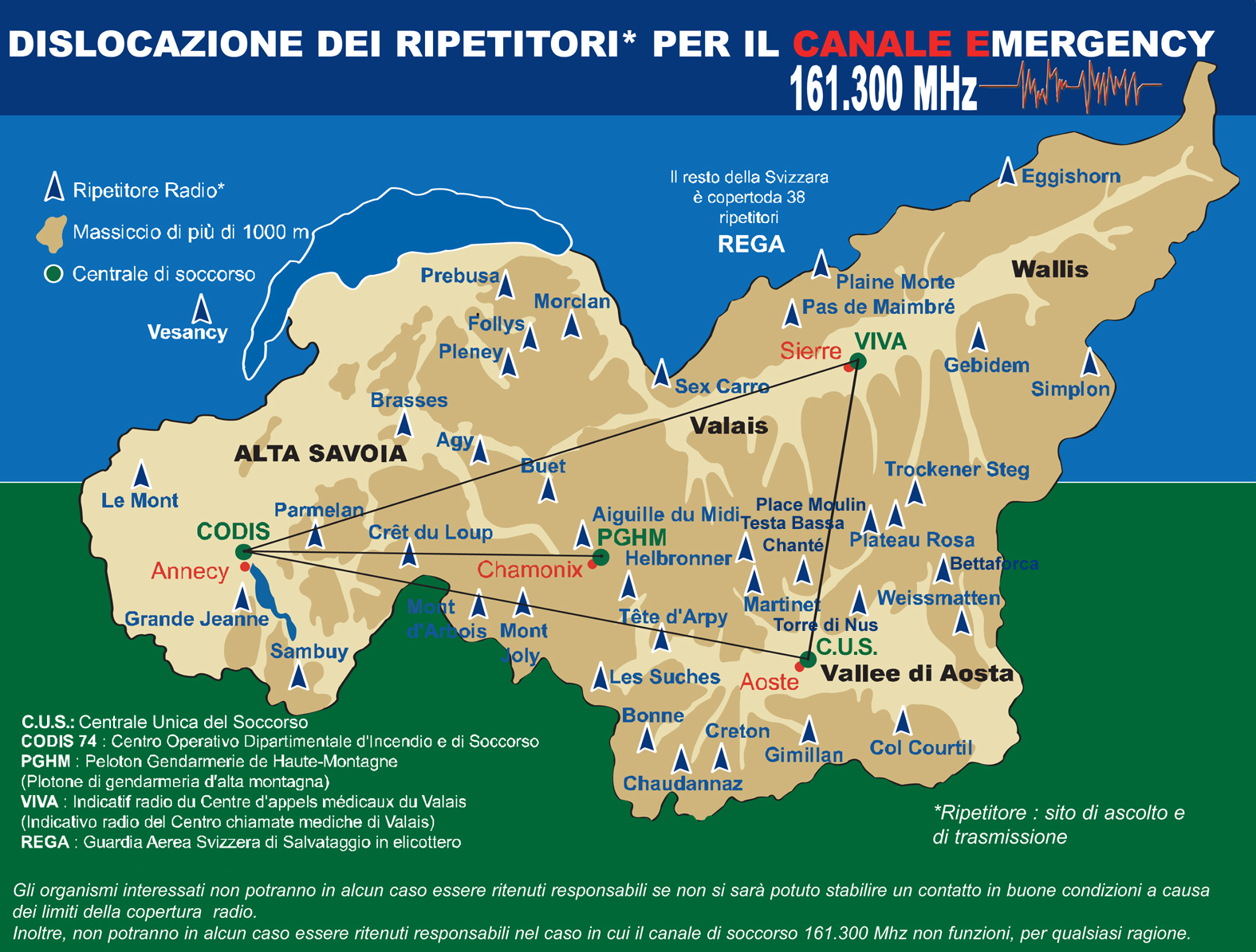 Si tratta di un progetto transfrontaliero tra Italia, Francia e Svizzera che hanno dedicato la frequenza 161,300 MHz all'invio di richieste di soccorso...