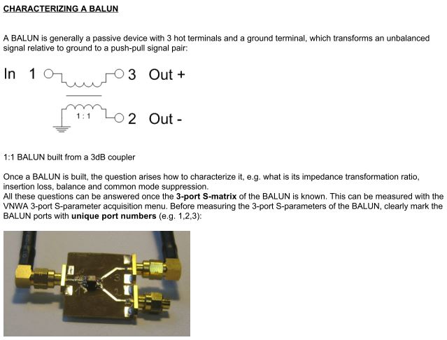 - 3-port analyzer e relativo "Characterizing a Balun"