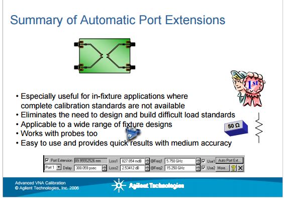 Con tutti i VNA professionali (e VNWA3) è possibile applicare la port extension e spostare matematicamente il piano di calibrazione, come ad esempio indicato da questa slide della Agilent: