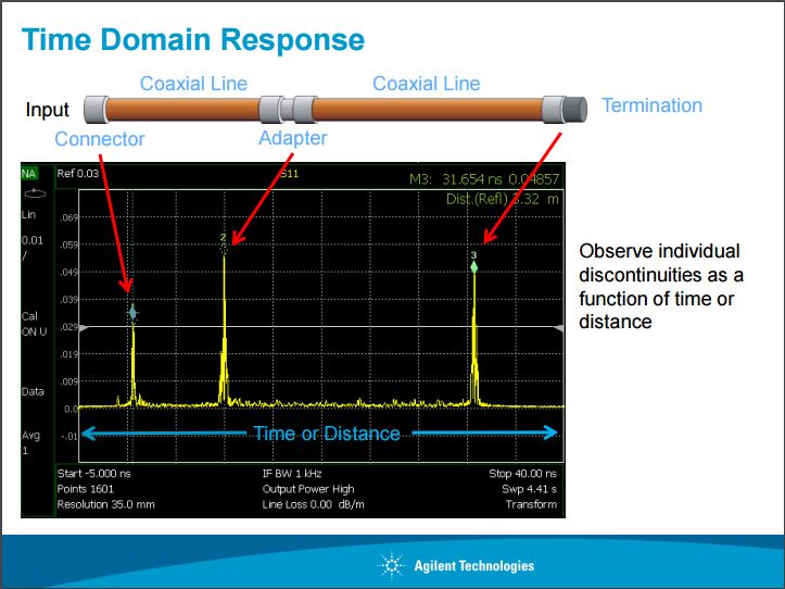 La misura nel dominio del tempo consente di visualizzare le caratteristiche del percorso dell'intera linea collegata. Questa è una slide sempre di Agilent:
