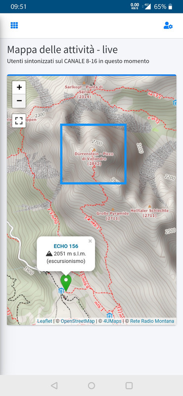 Utenti della RRM in attività outdoor in questo momento, costantemente sintonizzati sul CANALE 8-16, la frequenza radio di libero uso in banda PMR-446 impiegata per scopi di sicurezza in montagna. In caso di necessità sono rintracciabili via radio e sono abili a ricevere chiamate di emergenza da altri escursionisti nei dintorni per poi rigirarle al Soccorso Alpino via telefono.