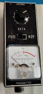 Ha 50 anni ed e' stato prodotto in Giappone. All'interno non c'e' il classico accoppiatore con toroide e i due diodi rivelatori ma c'e' la classica linea  come quella che aveva l'Osker 200. Il concetto e' il medesimo ma utilizza i vecchi diodi al germanio. Legge solo l'SWR e non misura la potenza, ma e' quello che mi ha permesso di ristabilire la congruenza tra la teoria e la pratica. Con questo "baracchino", che contiene solo l'essenziale per misurare il solo SWR, anche al variare della potenza su un carico disadattato, l'SWR misurato e' il medesimo.