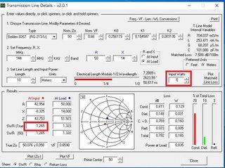 Nel caso l'adattamento non sia perfetto, come si puo' desumere dai calcoli fatti in precedenza e da programma TLDetails, l'SWR aumenta alll'aumentare della potenza trasmessa. In sintesi, se trasmetto con 5W , l'SWR letto , ad esempio sara' 1.2, ma se trasmetto con 100W l'SWR aumentera' poiche' aumentera' la potenza riflessa. Pertanto non e' da prendere per oro colato l'indicazione di un wattmetro in linea quando si ha un carico disadattato.
