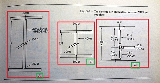 La A e la B sono la stessa configurazione dove vengono usati dipoli ripiegati che hanno una impedenza di 300 OHm.