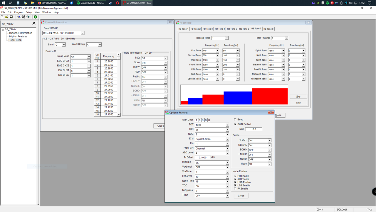 Il cavo di programmazione è lo stesso del 9900, e funziona anche sul nuovo Superstar 3900 2023, e il software di programmazione fa circa le stesse cose di quello del 9900, compresa la possibilità di disattivare il PA, che nei cambi di modo AM, FM, USB, LSB, salta sempre fuori e in breve scoccia. Per chi non gira a comprare ferro vecchio o a vendere pesce, disattivare il PA non sarà un grave sacrificio.