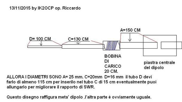 seriamente, ho riguardato il progetto, il dipolo risulta in "corto" per la bobina "di adattamento" piazzata al centro e che, sinceramente, non capisco a cosa debba servire !